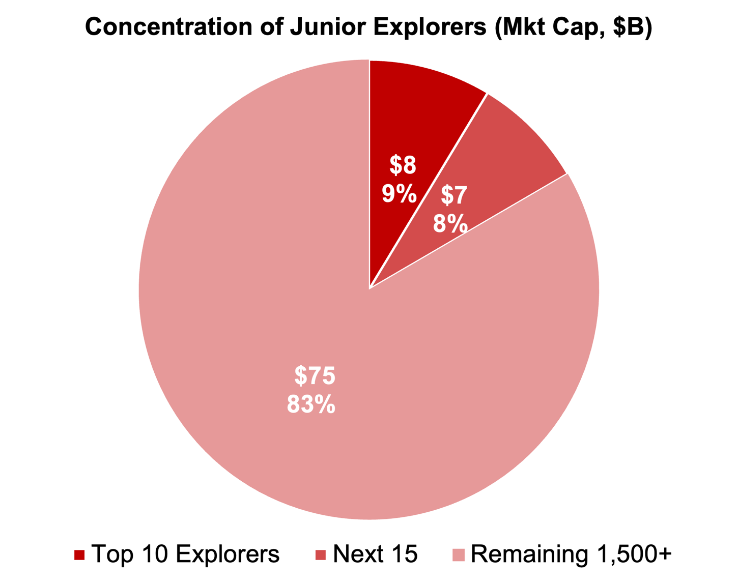 [1] Based on Bloomberg data of publicly listed explorers listed on the TSX and ASX as of August 2025