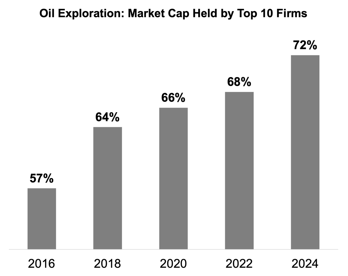 Thousands of undercapitalized players compete without a clear leader, in stark contrast to venture capital and oil exploration—industries that are 3–7x more concentrated. History suggests the sector is primed for consolidation and a breakout player [1].